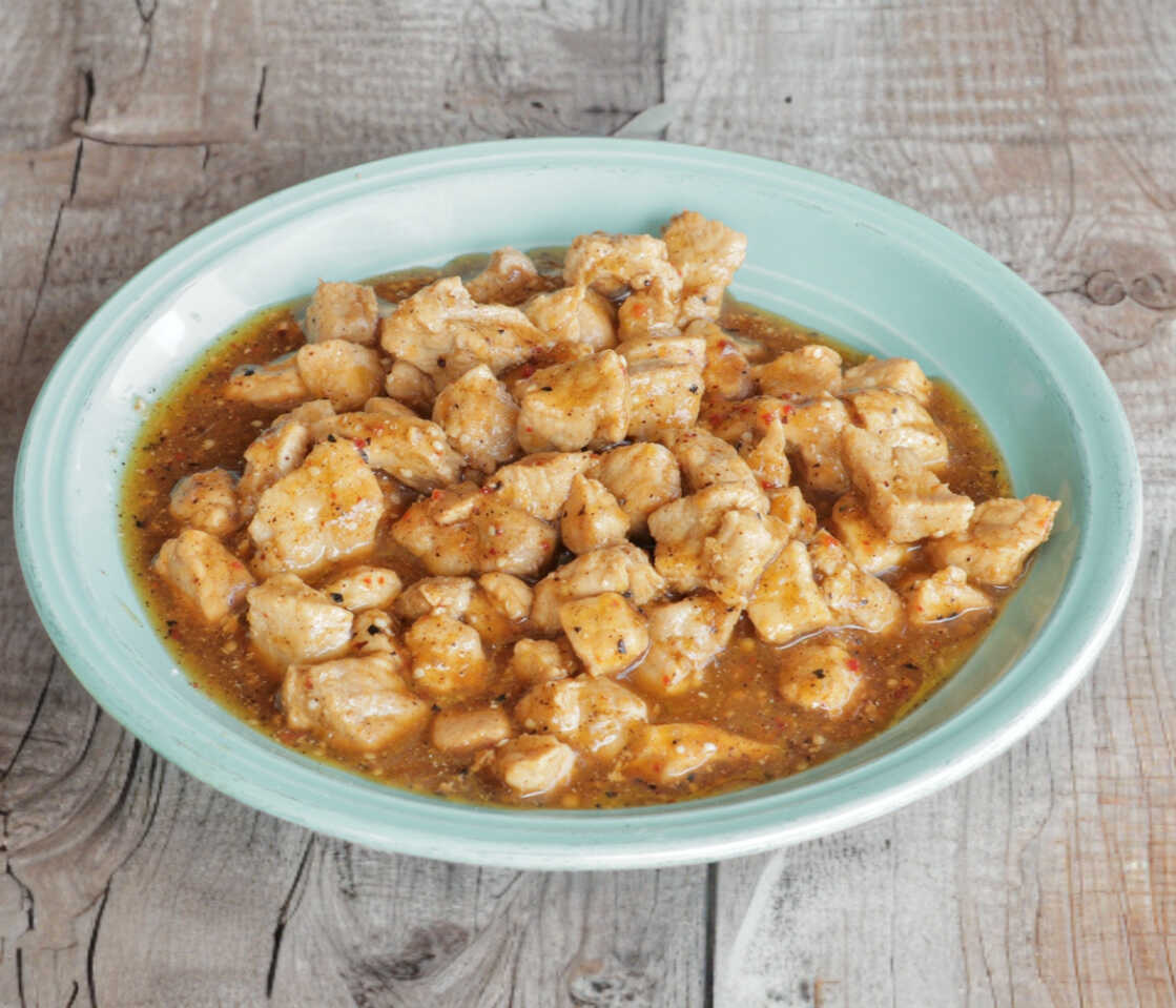 Termo de medio litro de chicharrón duro en salsa de molcajete