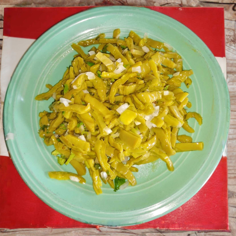 Termo de medio litro de nopales naturales con cilantro y cebolla.