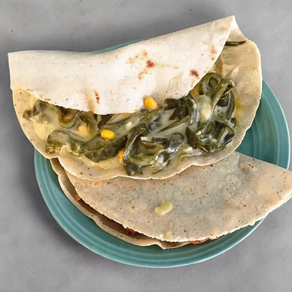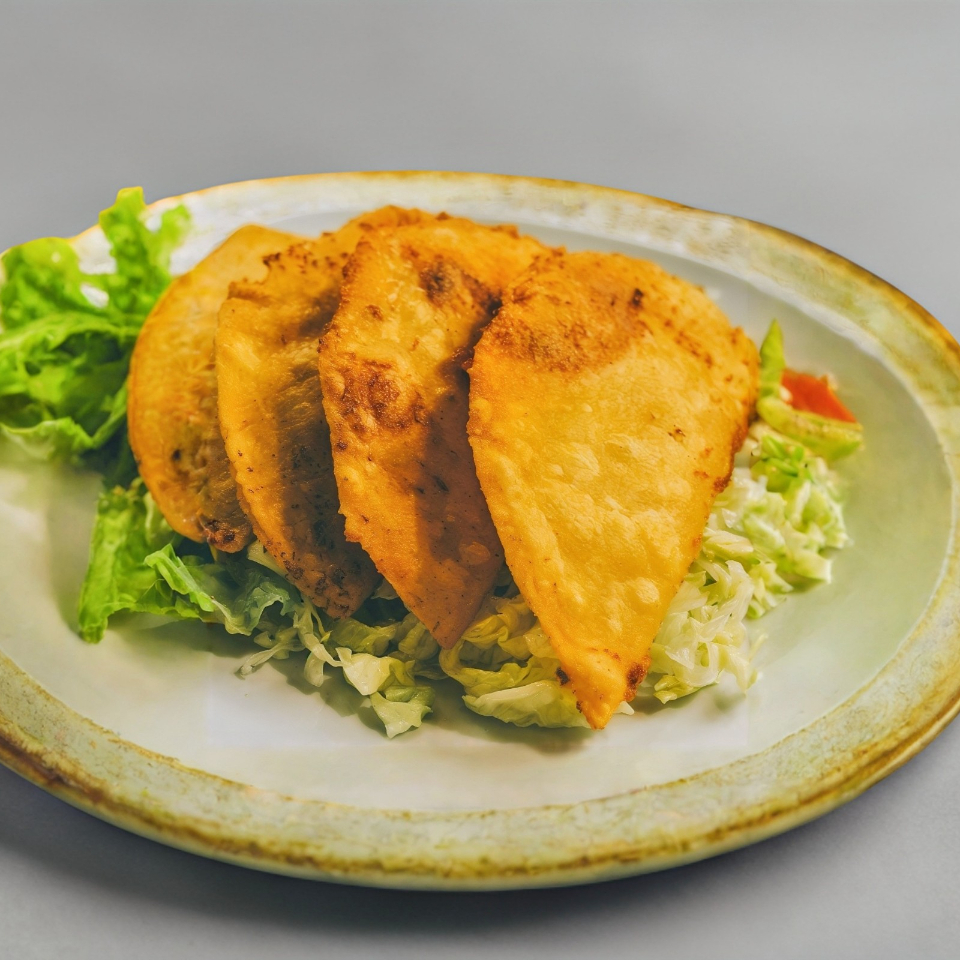 Quesadilla dorada del guisado de tu preferencia, sin verdura.