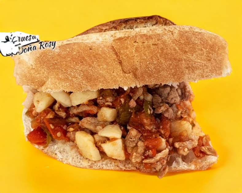 Burrito de 25 cm, en tortilla gigante de harina, elije 2 de tus guisos favoritos, una salsa, burrito completo.