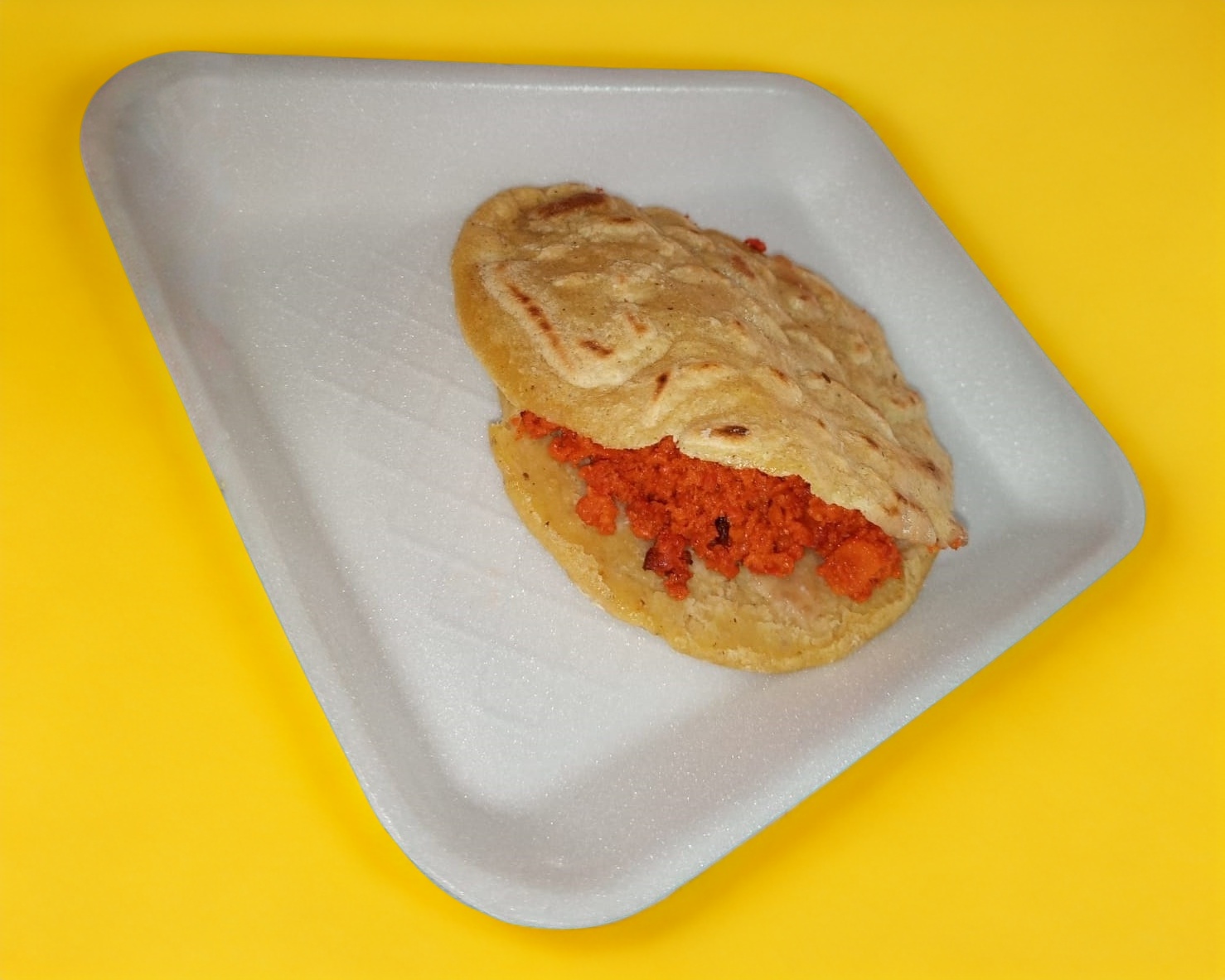 Tortilla Rellena: Con guiso al gusto, acompañada de lechuga, tomate, jitomate y queso Oaxaca. Porción para 1 persona.