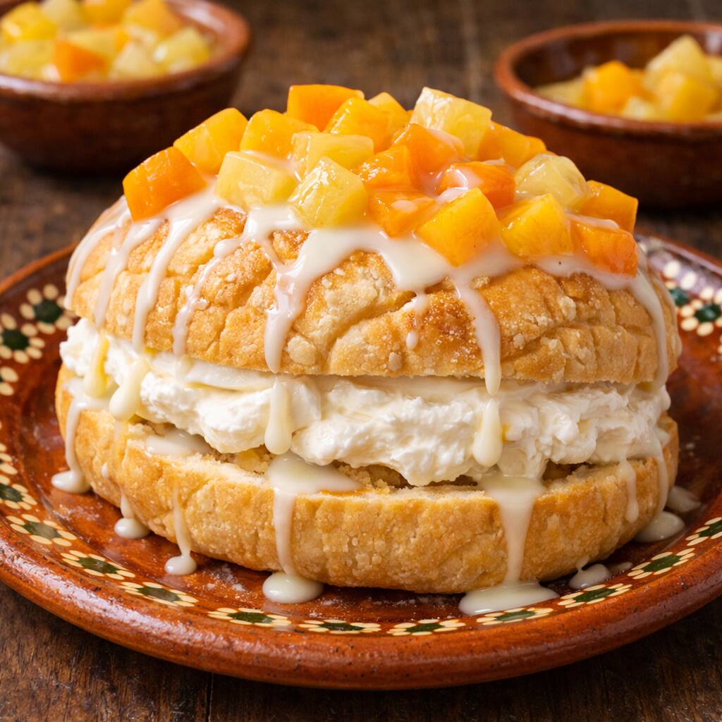 Concha con nata y frutos almibar
