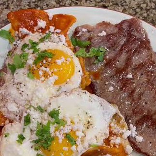 Chilaquiles con huevo y carne