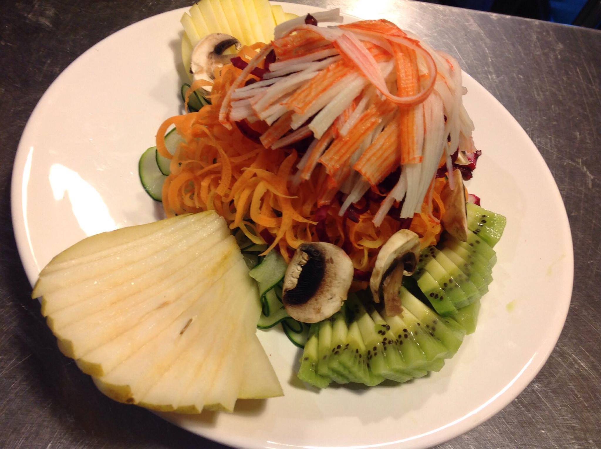Verduras con salsa de soja acompañadas de arroz , ensalada y: