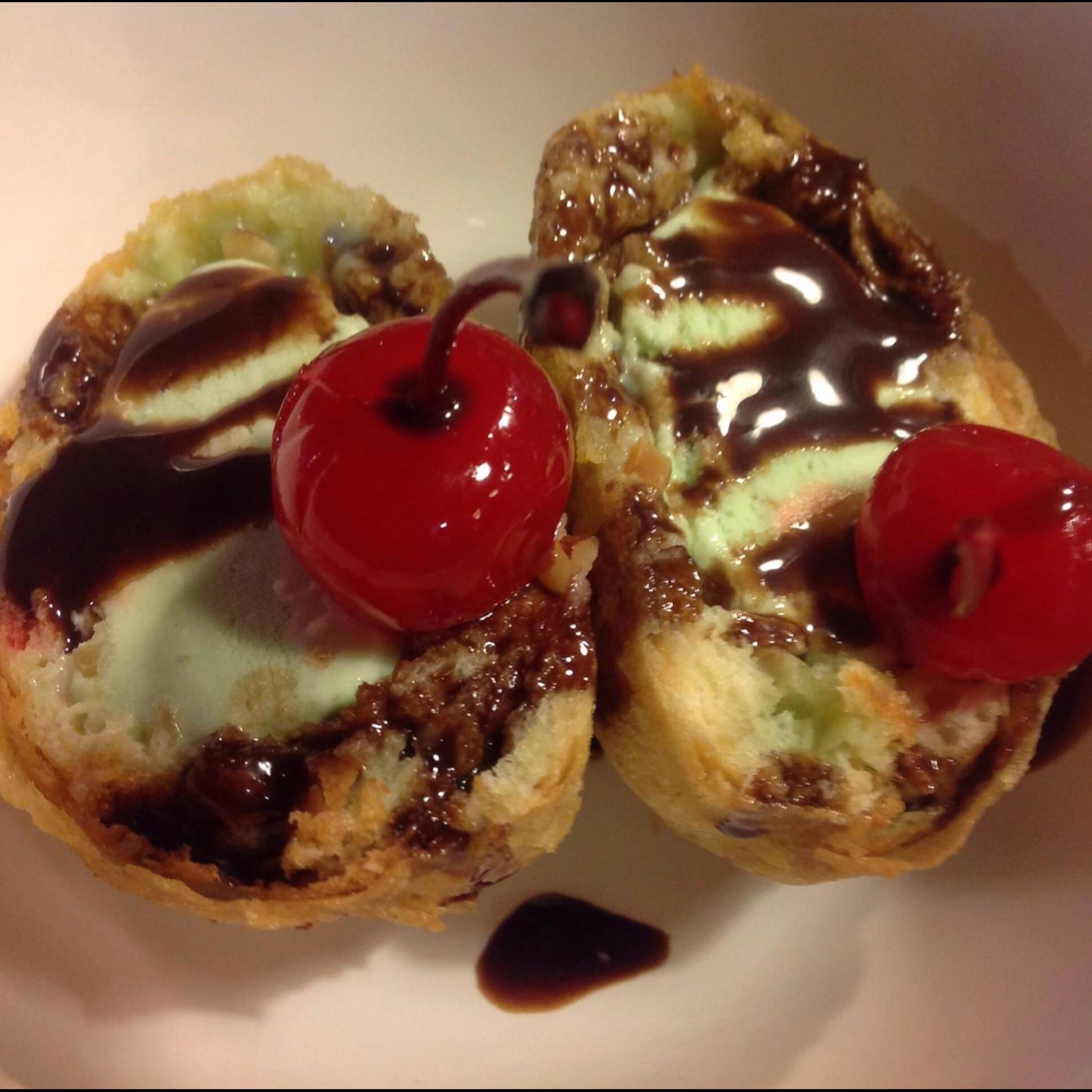 Helado de crema cubierto en tempura y frito