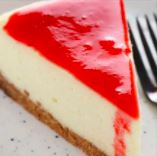 Delicioso tradicional pastel de queso, con fresa líquida.