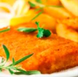 250 Gr de filete de pescado Tilapia. Crujiente empanizado, con ensalada y arroz.