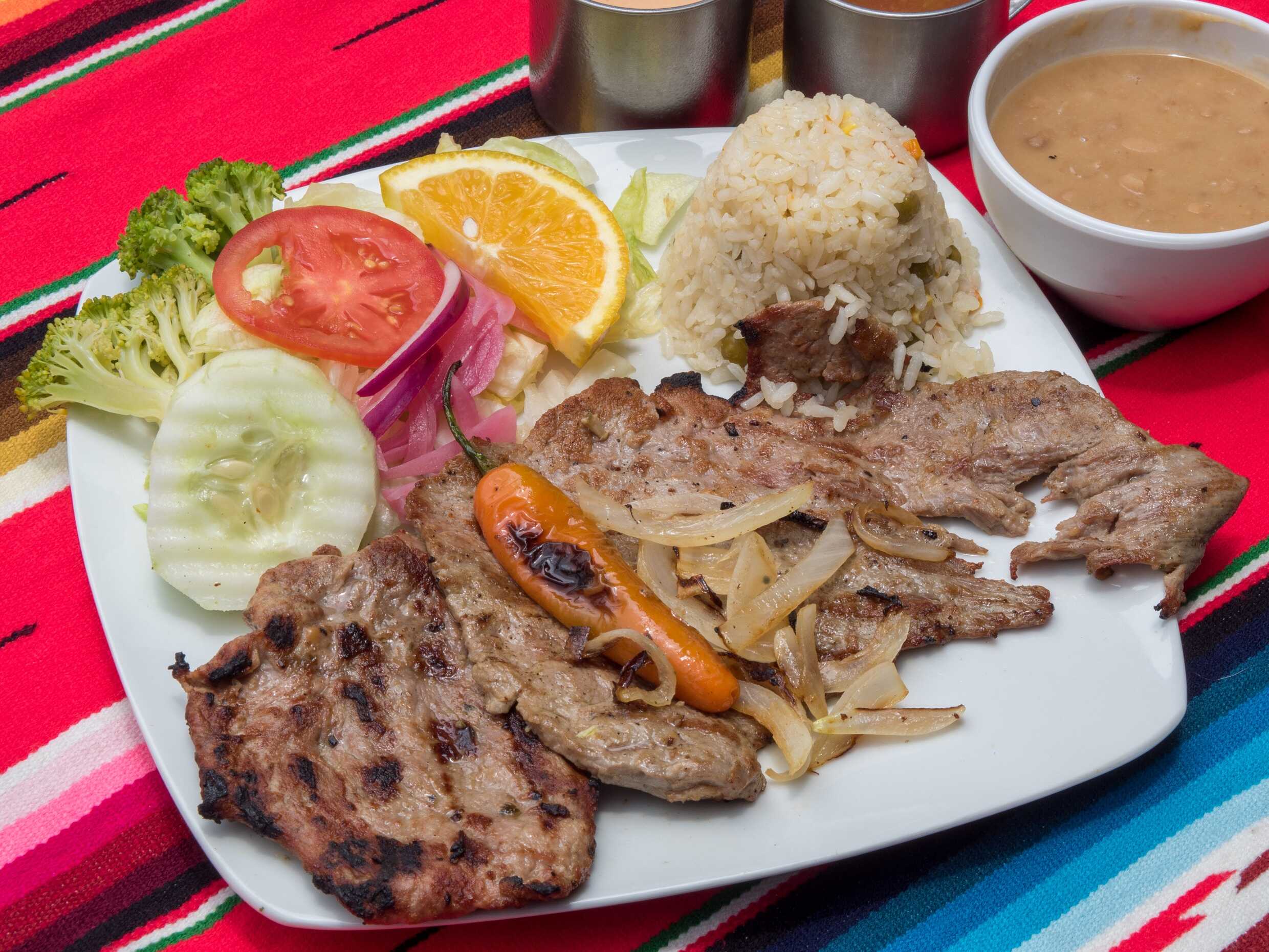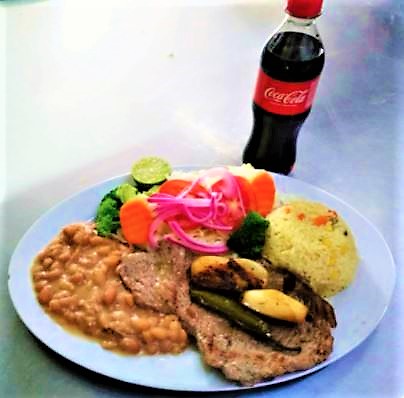 300 Gr de arrachera, 1 quesadilla del comal, frijoles, arroz y ensalada.