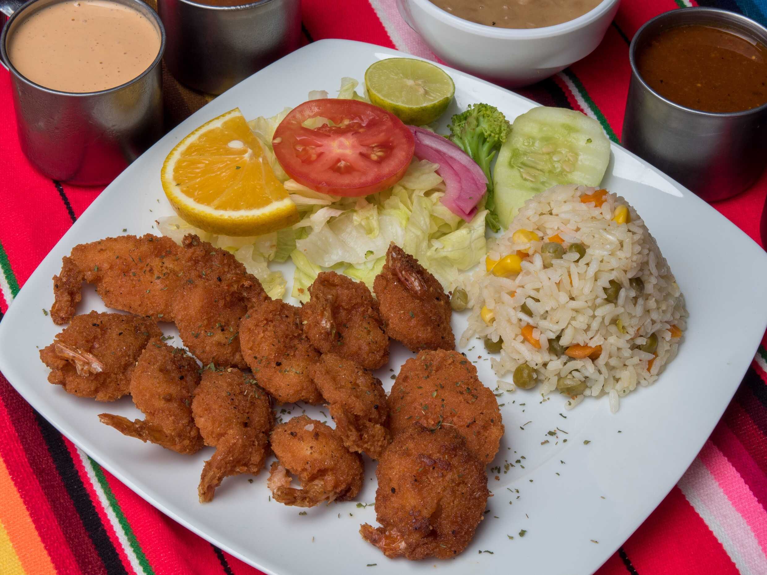 200 Gr de camarones empanizados bañados en coco, aderezo mostaza dulce y ensalada.