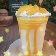 Bebida a base de yogur griego, mango, hielo, azucar y crema batida