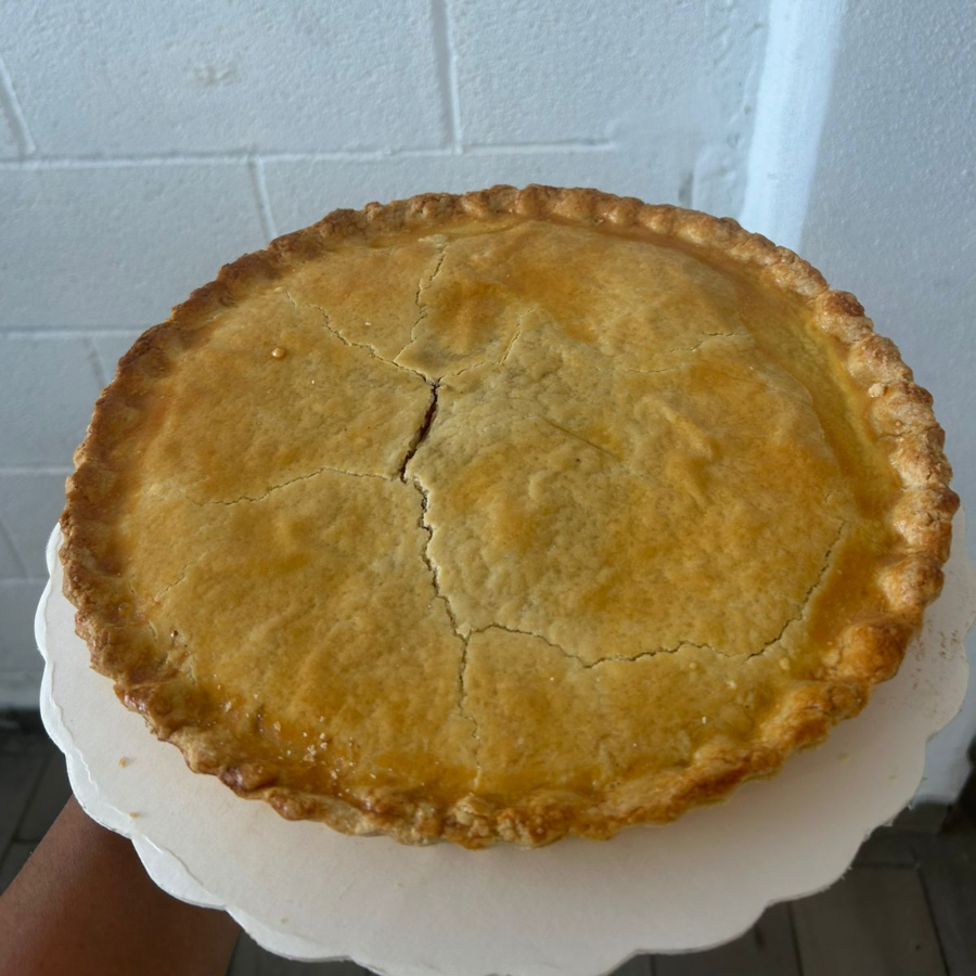Deliciosa tarta a base de mantequilla, rellena de queso y mermelada de moras natural.