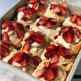 Rol de Canela Glaseado con Fresa