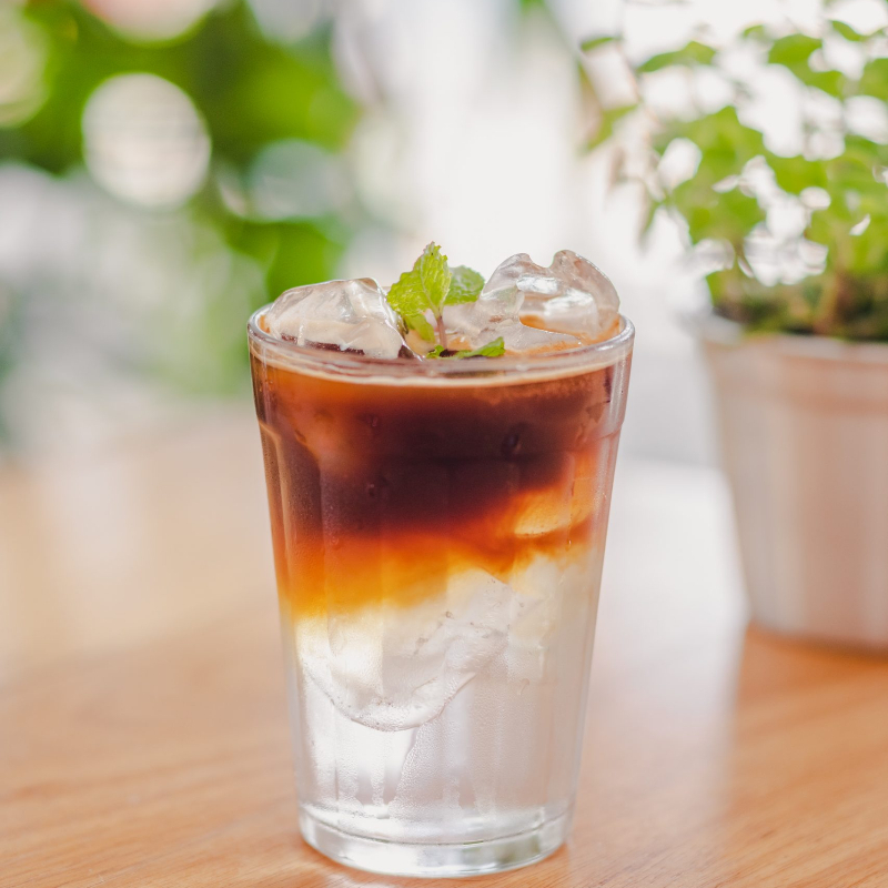 Delicioso café frio, a base de un shot de espresso, agua fria y hielo