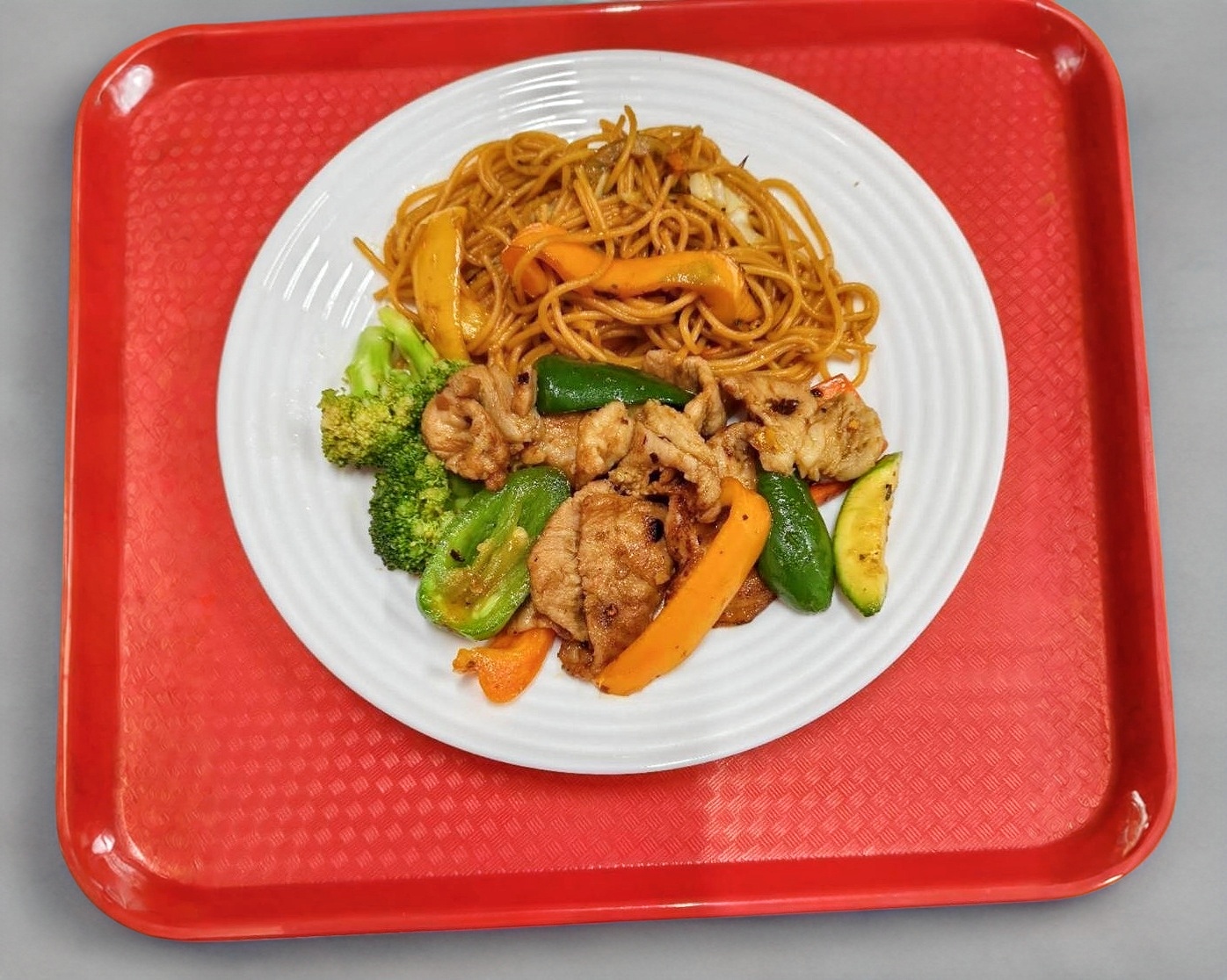 Elige entre arroz o pasta y 3 guisados.