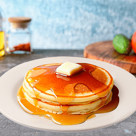Dos hot cakes recién hechos, elaborados con nuestra deliciosa receta de la casa.
