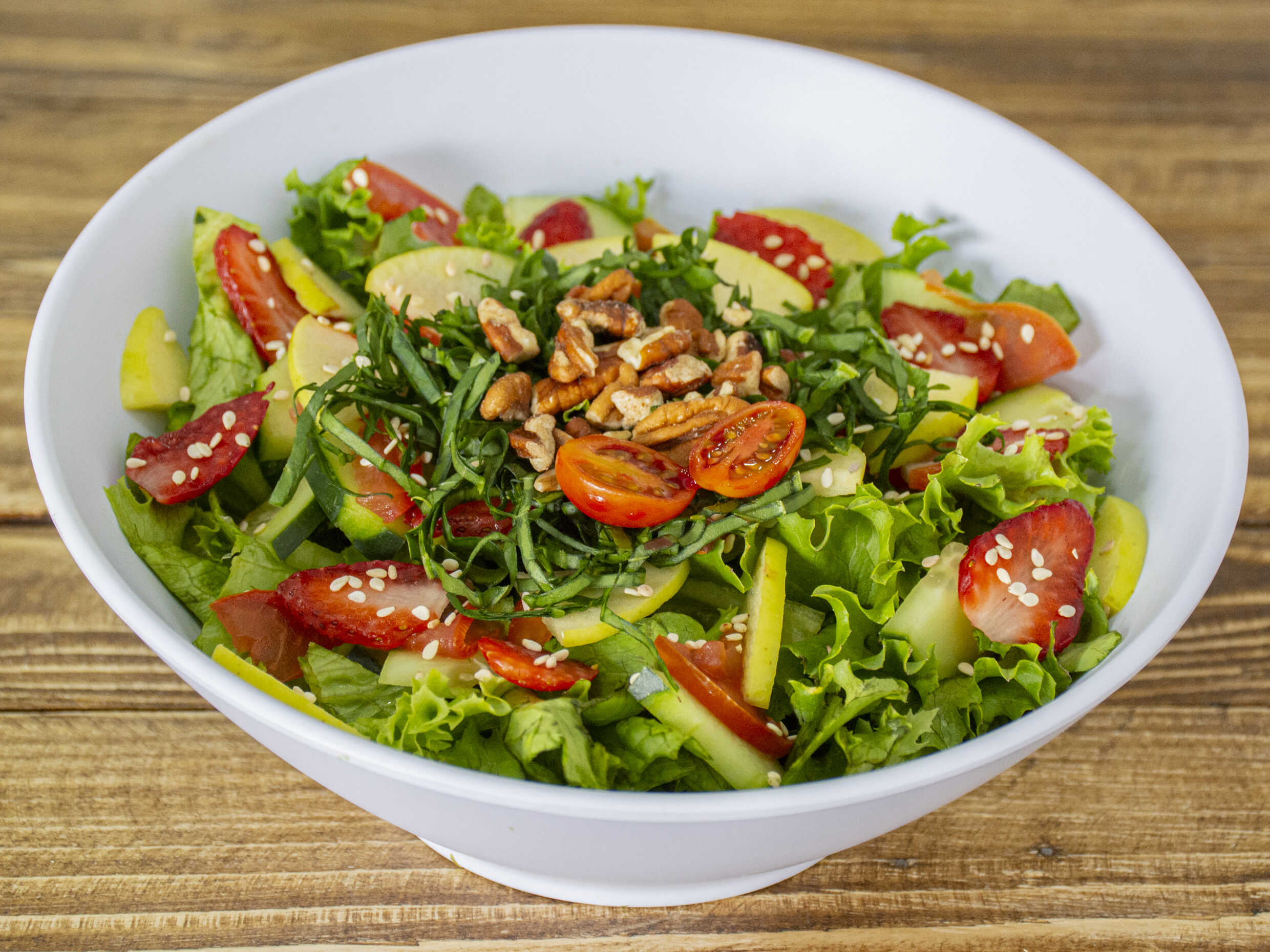 Mediana. Fresa, jitomate, manzana, espinaca, pepino y almendras.
