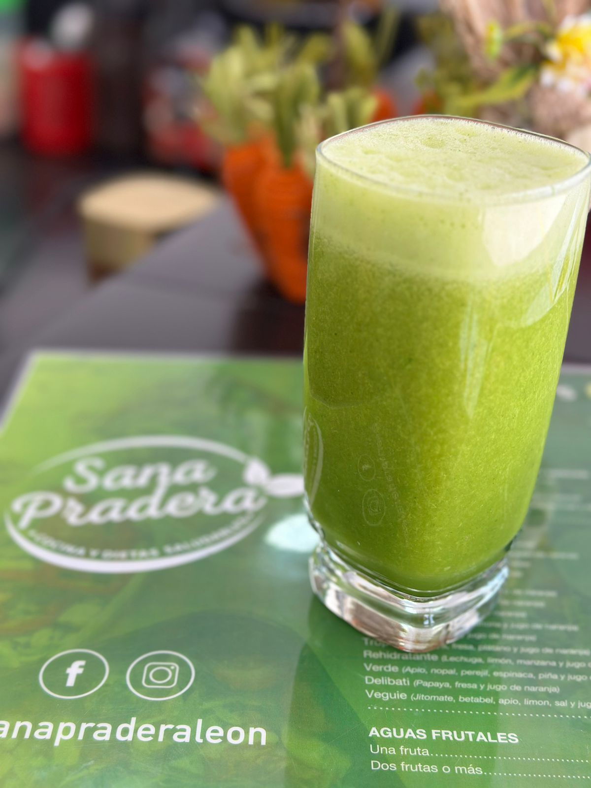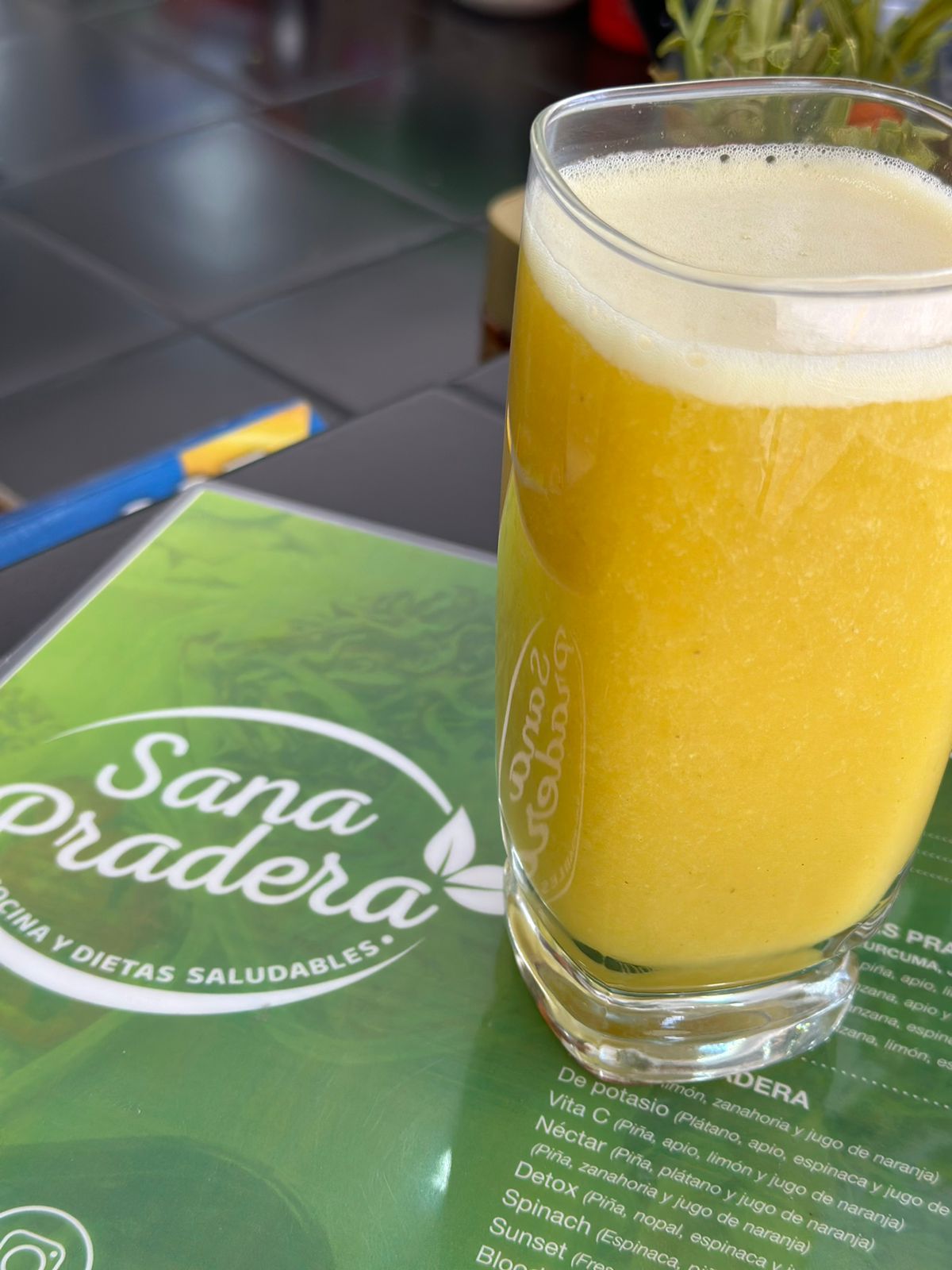 16 Oz. Apio, nopal, perejil, espinaca, piña y jugo de naranja.