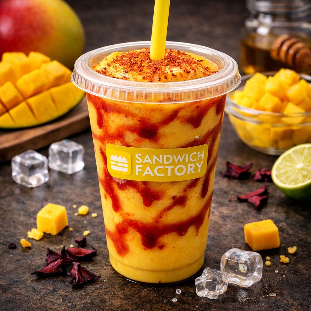 Smoothie preparado con mango natural y hielo, endulzado con splenda, tajin y chamoy.