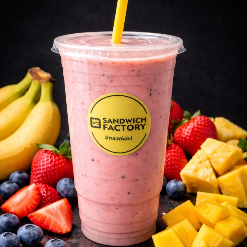 Licuado de frutas naturales, preparado al momento, con leche deslactosada ligth y los toppings de tu eleccion