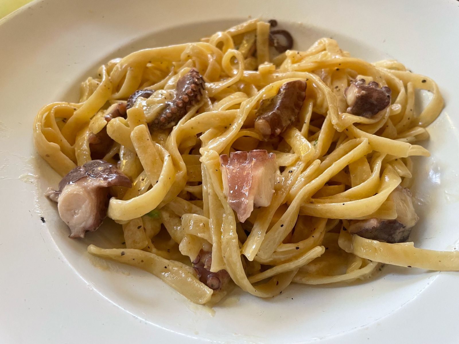 Fetuccini preparado a la crema con pulpo