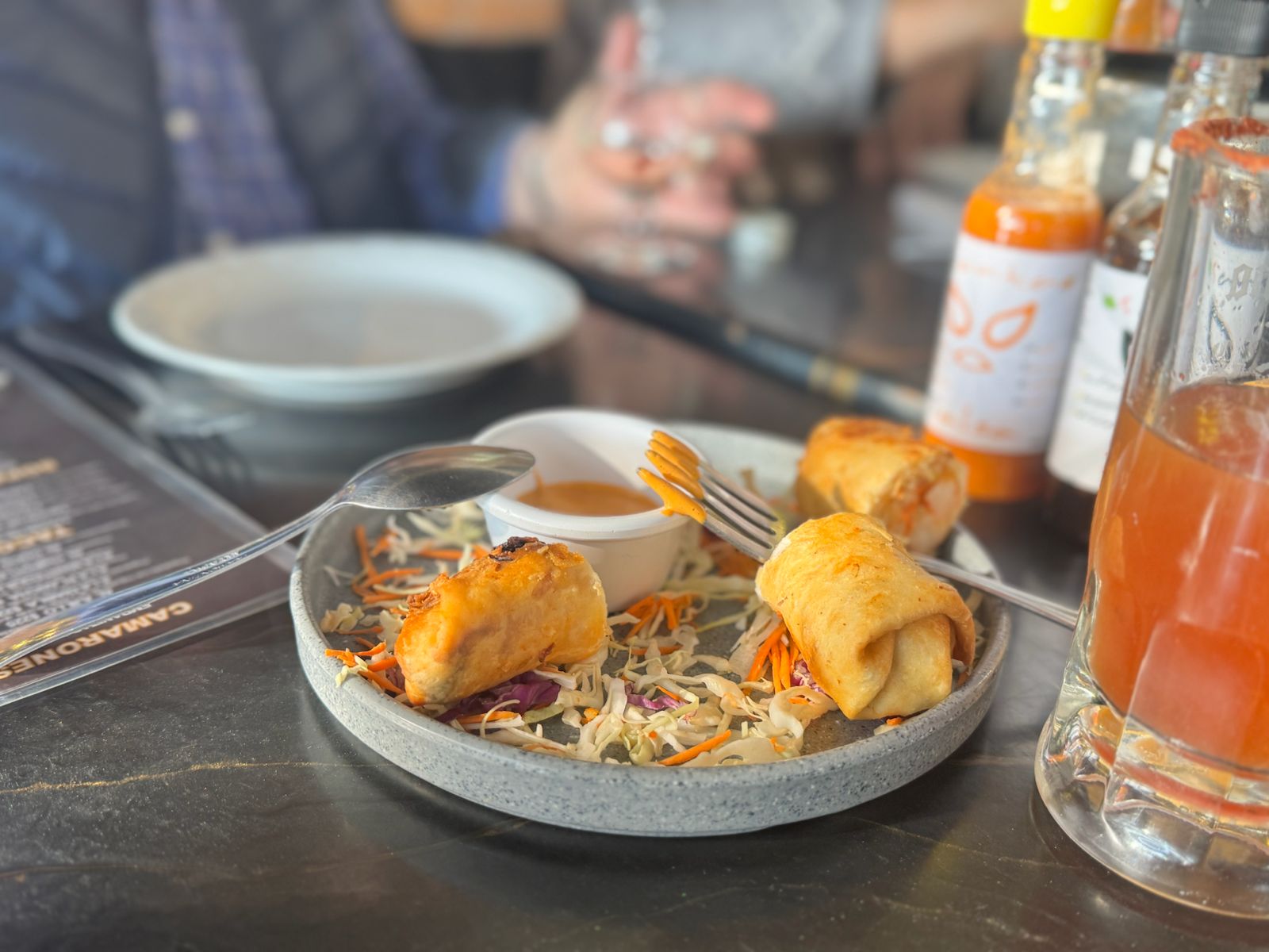Rollos de harina fritos de camaron preprado