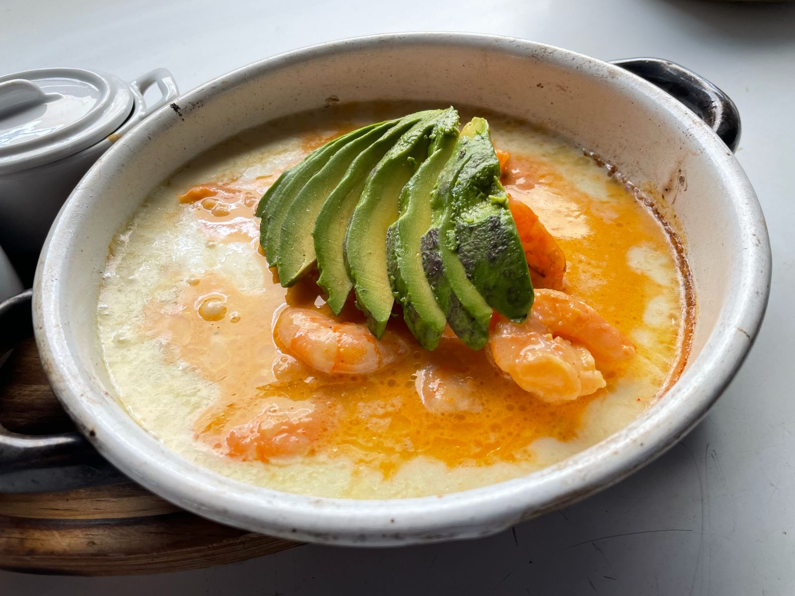 Exquisita tradicional sopa de camaron