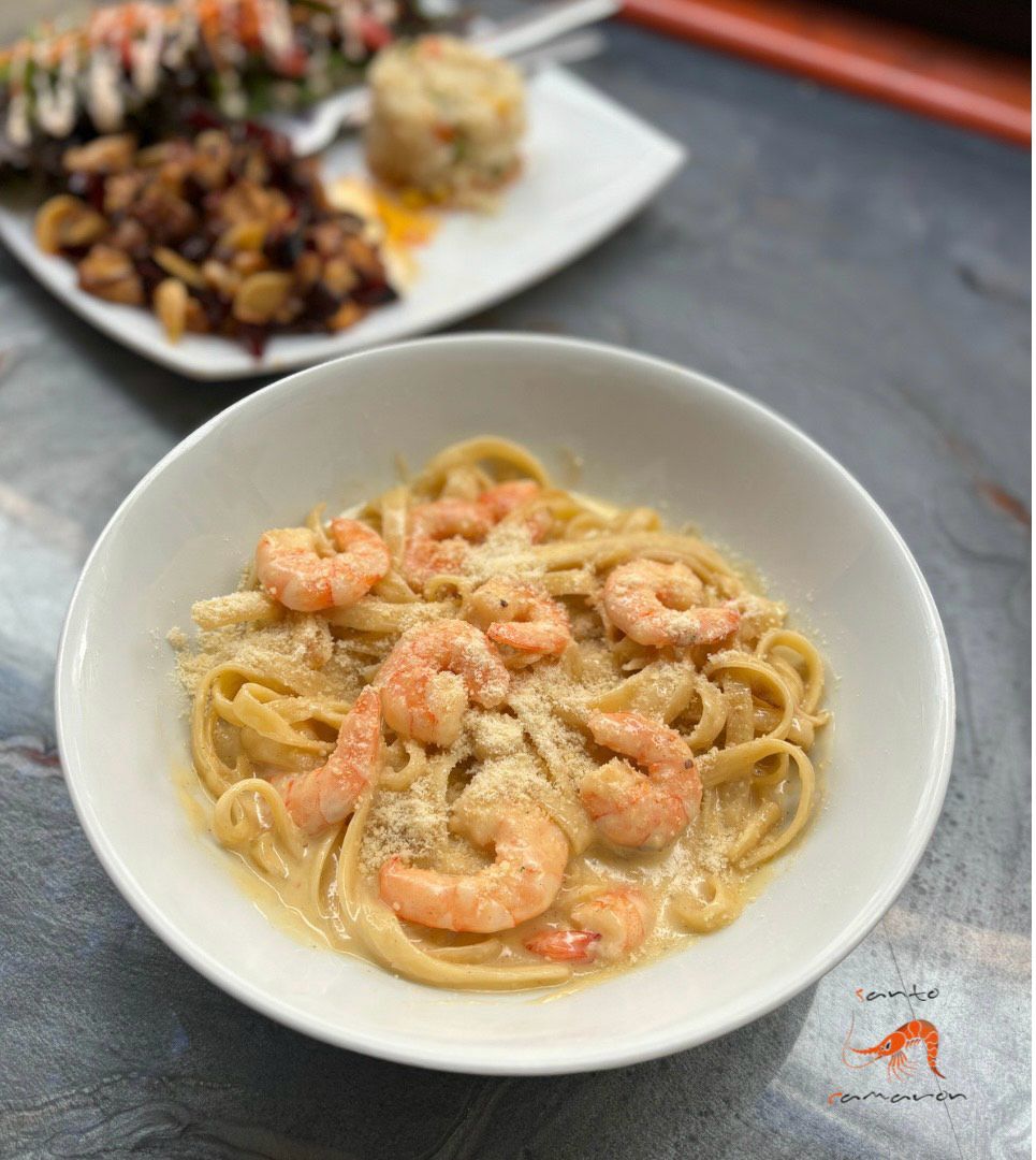 Fetuccini preparado a la crema con camarones