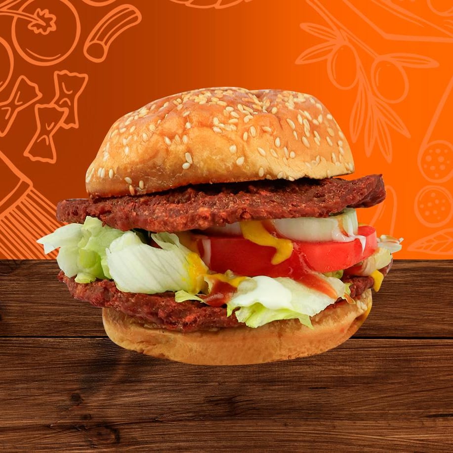 Dos jugosas carnes de res a la parrilla, con todos los ingredientes de la tradicional.