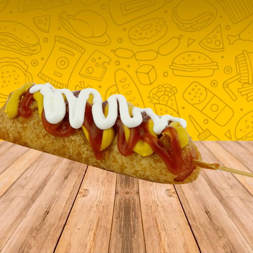 Banderilla de salchicha, doradita y crujiente.