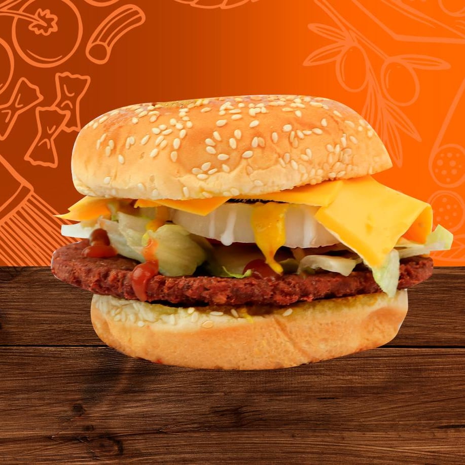 Hamburguesa tradicional con doble porción de queso americano fundido