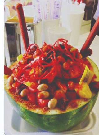 Sandía, 2 variedad de fruta, 4variedad de fruta, va decimos de tamarindo, chamoy liquido, chamoy en polvo, jarabe de tamarindo, limon