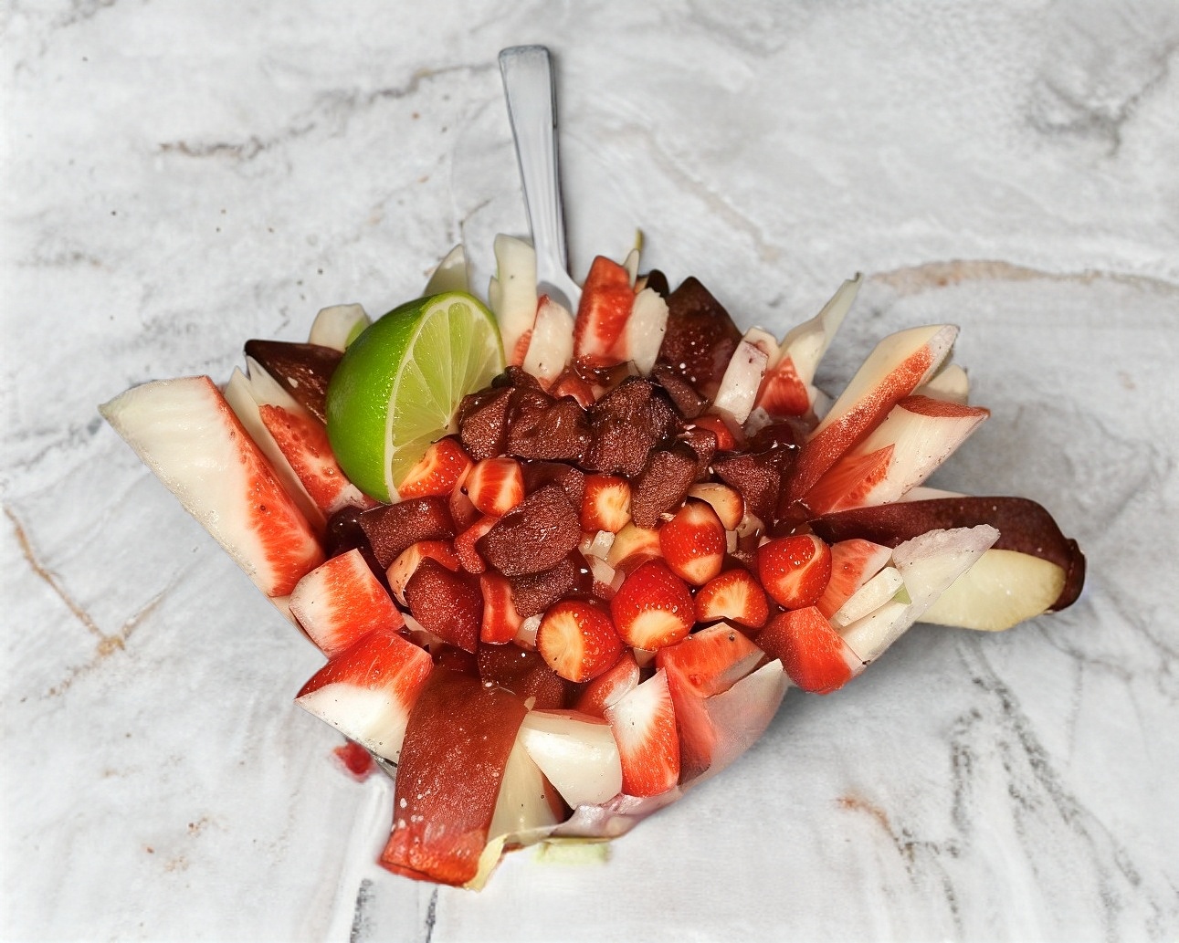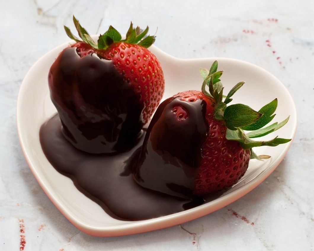 Fresas, chocolate y chispas de granillo.