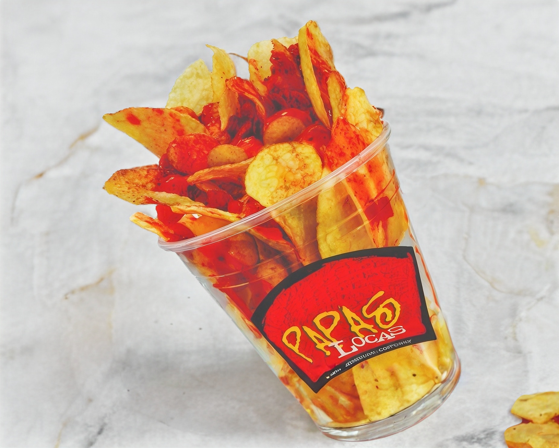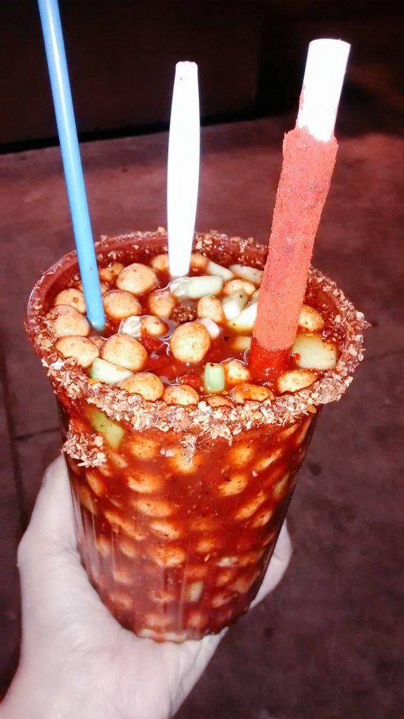 2 variedad de papas, 2 variedad de cacahuates, 3 gomitas, clamato, salsa maga, tajín, limón, chamoy liquido.