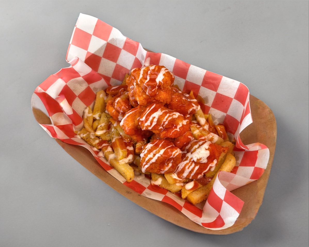 10 Boneless de pollo acompañadas de 200 g de papas agrega hasta 2 salsas.