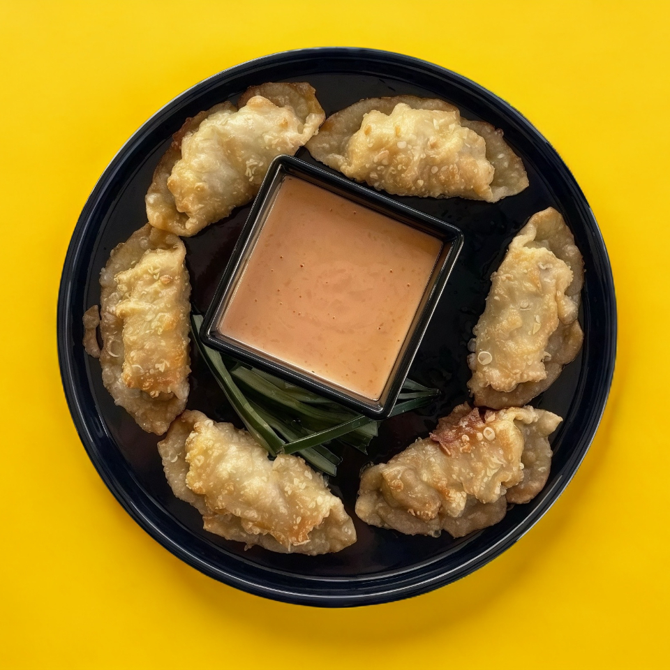 Orden de 4 empanadas japonesas rellenas de carne de puerco fritas.