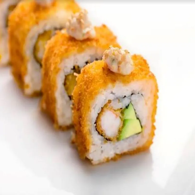 Dentro filadelfia, pepino, proteína a elegir, por fuera empanizado con chipotle.