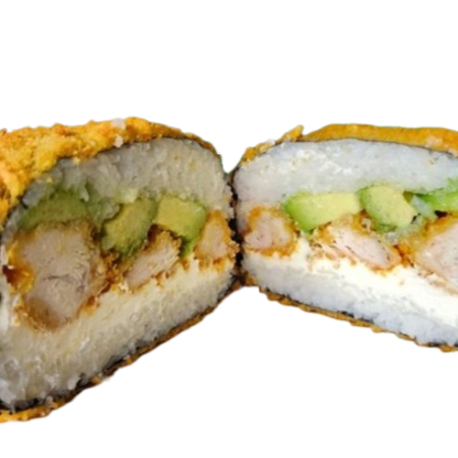 Arroz, aguacate, queso crema,pollo empanizado y bañado en salsa buffalo, envuelta en alga y empanizada con panko!