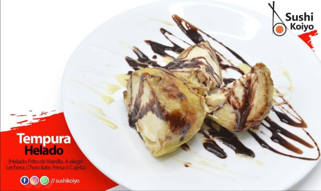 Envuelto en plátano macho frito, relleno de kakiage (verdura tempurizada), camarón empanizado y philadelphia bañado en salsa de la casa.