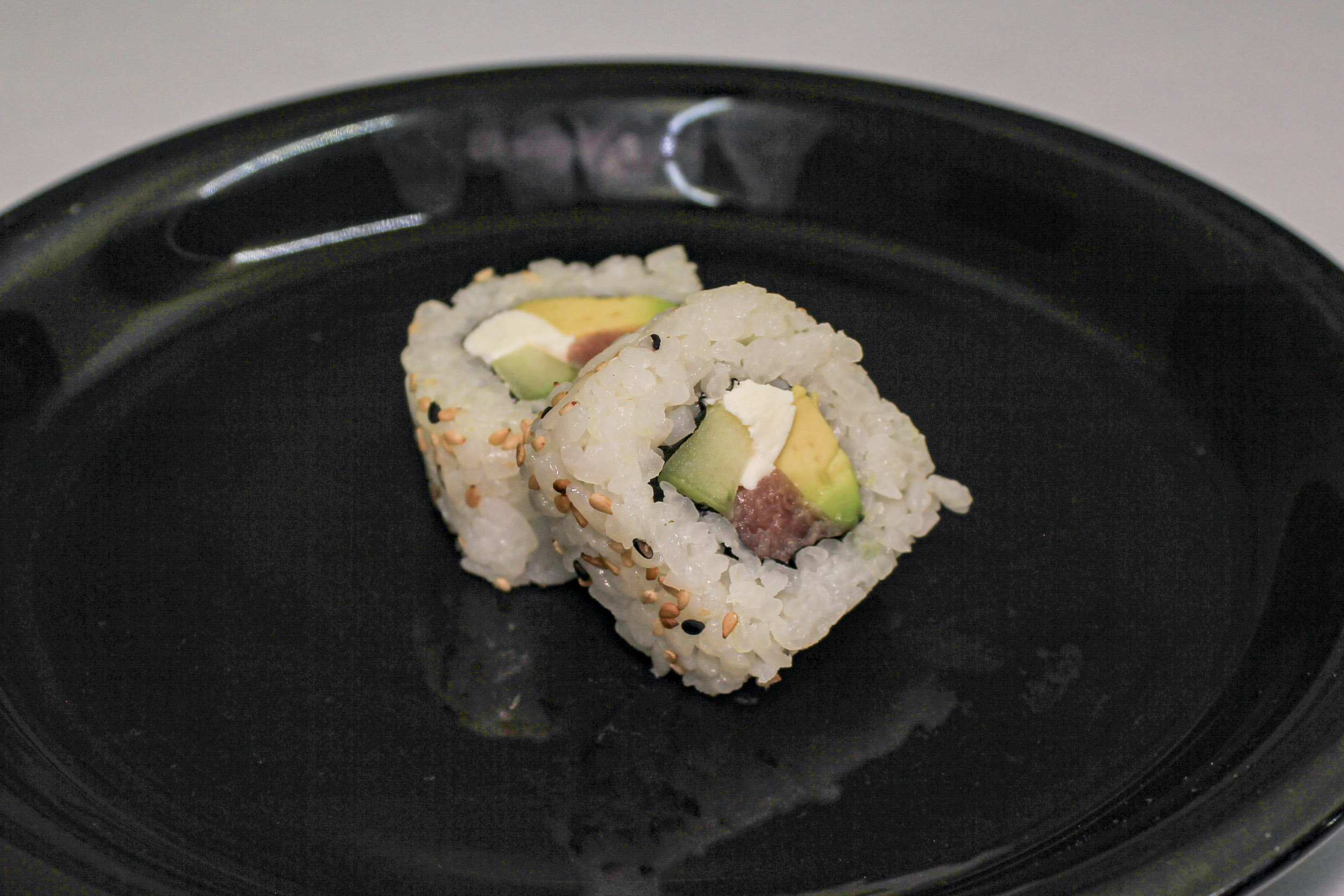 Relleno con : Atún, aguacate, pepino, queso crema.