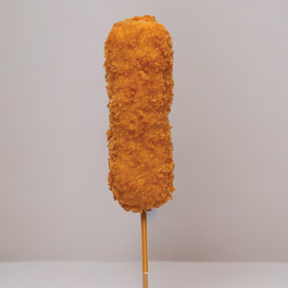 Kushiague Queso Crema, Brocheta empanizada, viene con una salsa de chipotle.