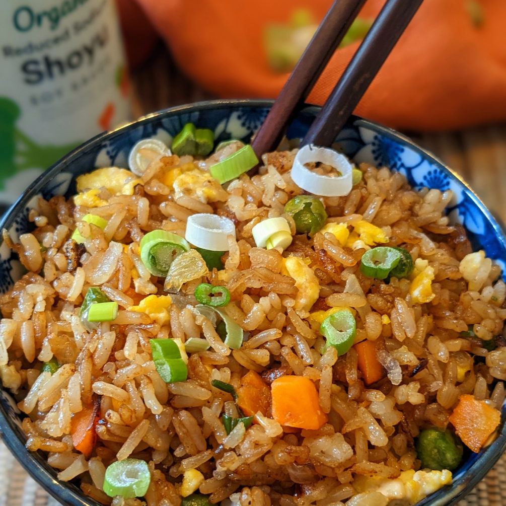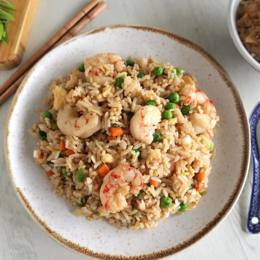 Arroz frito sazonado con verduras, camaron, res y pollo