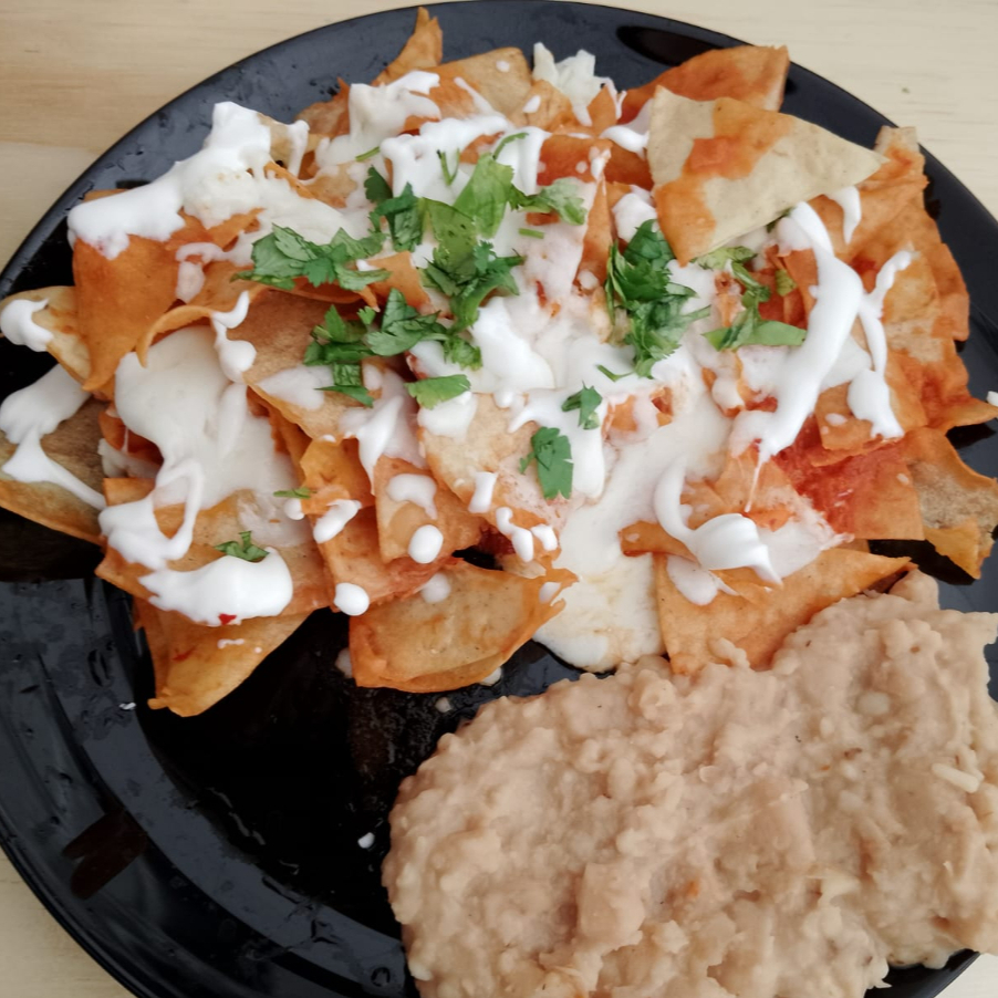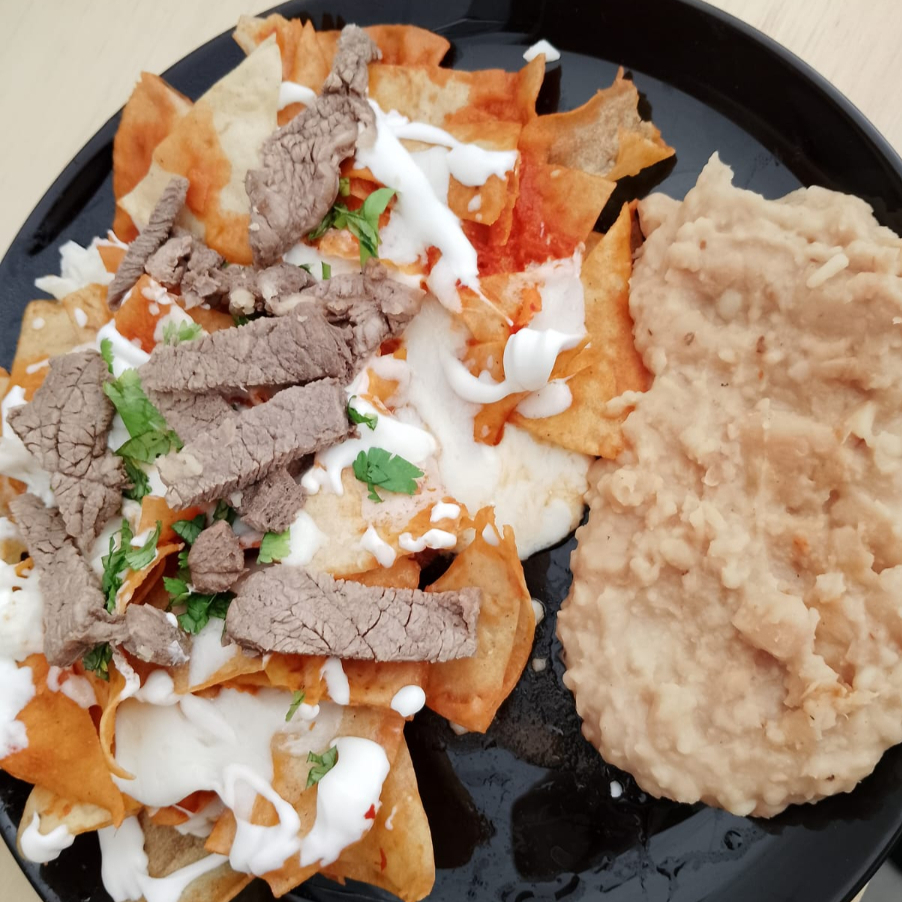 Acompañados de frijoles , queso gratinado, crema y cilantro