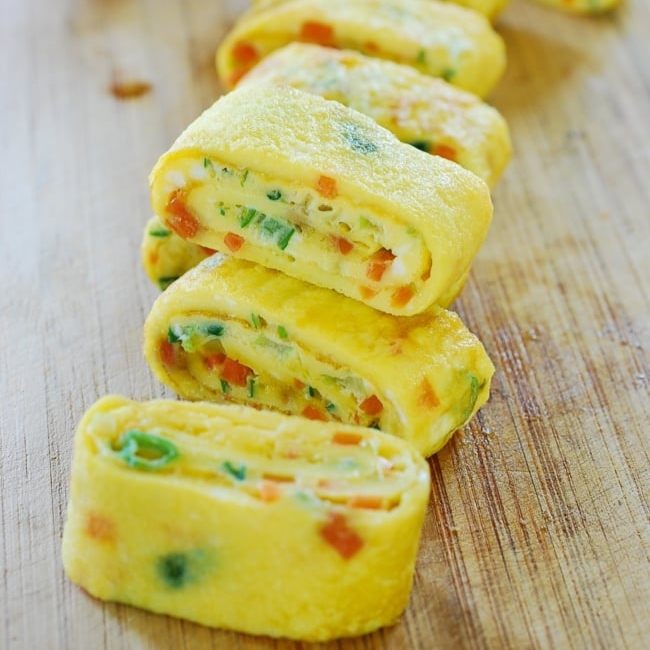 En forma de rollito con zanahoria calabaza y queso acompañado con arroz blanco y carne de res sazonada