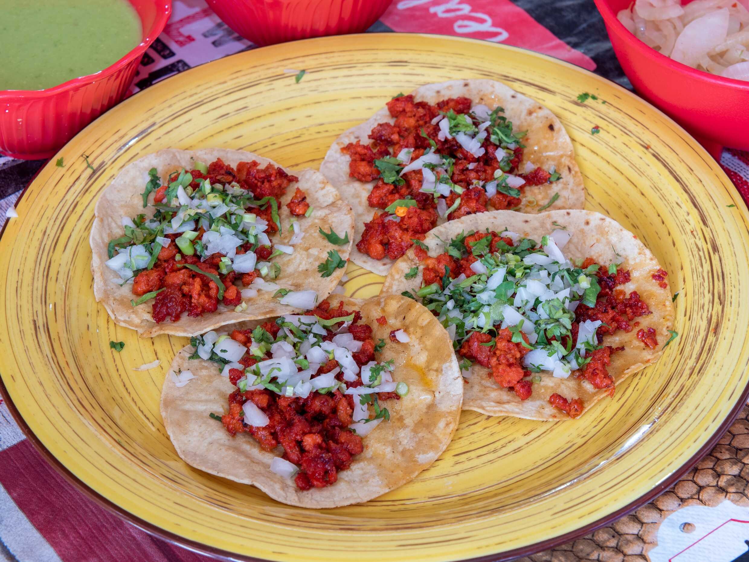 Deliciosos tacos de chorizo con cebolla y cilantro