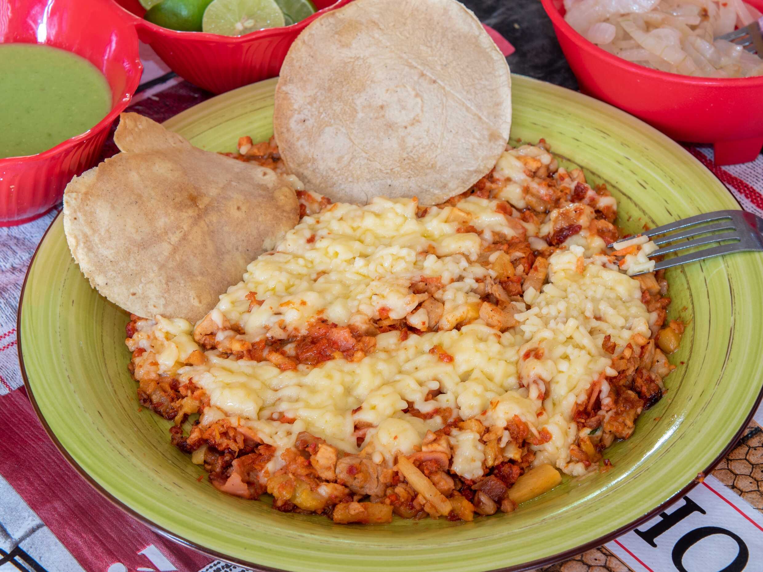 Deliciosa suegra preparada con bistec, chorizo, rico queso fundido.