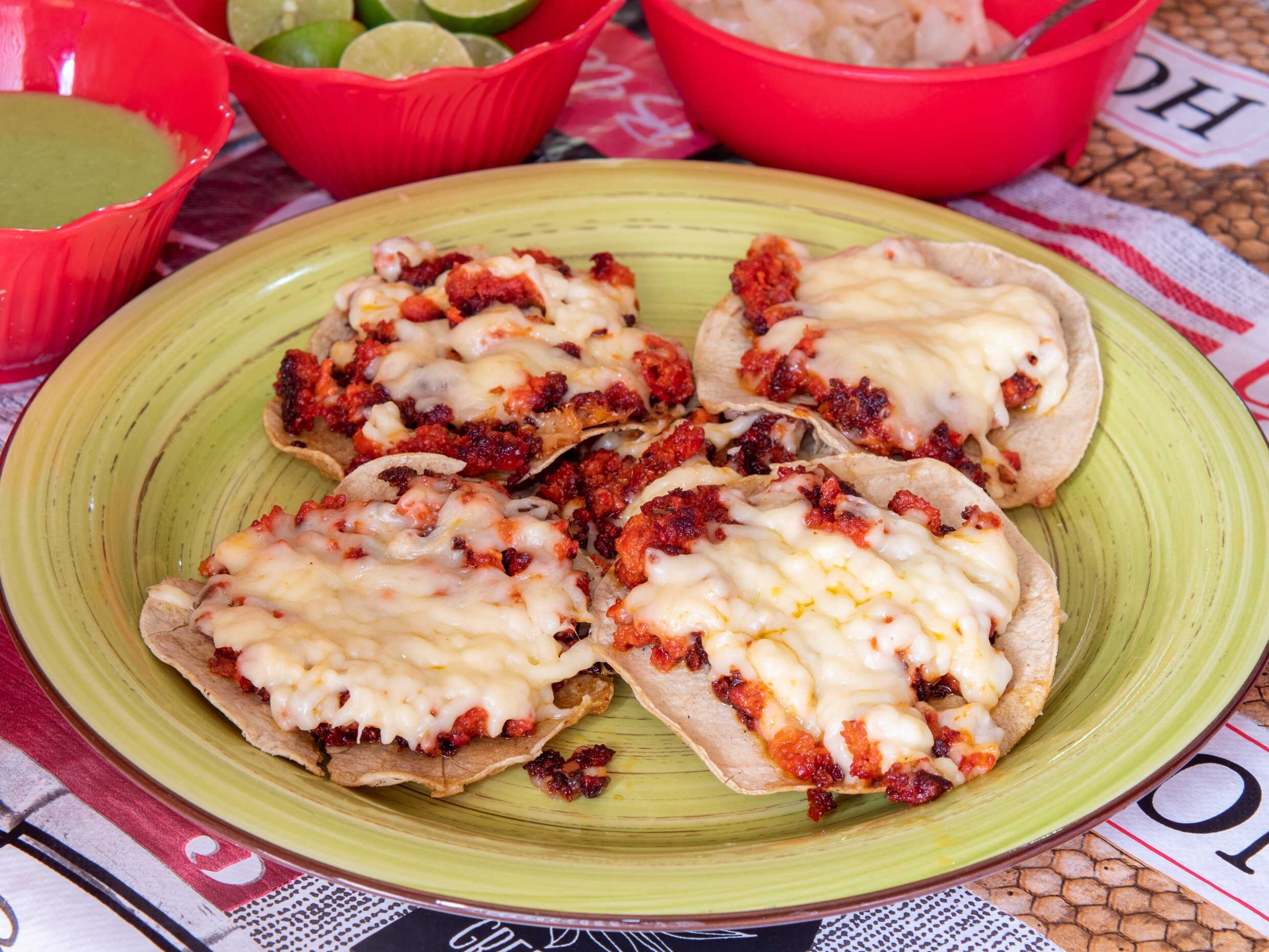 5 Deliciosas duritas preparadas con bistec, chorizo y queso fundido
