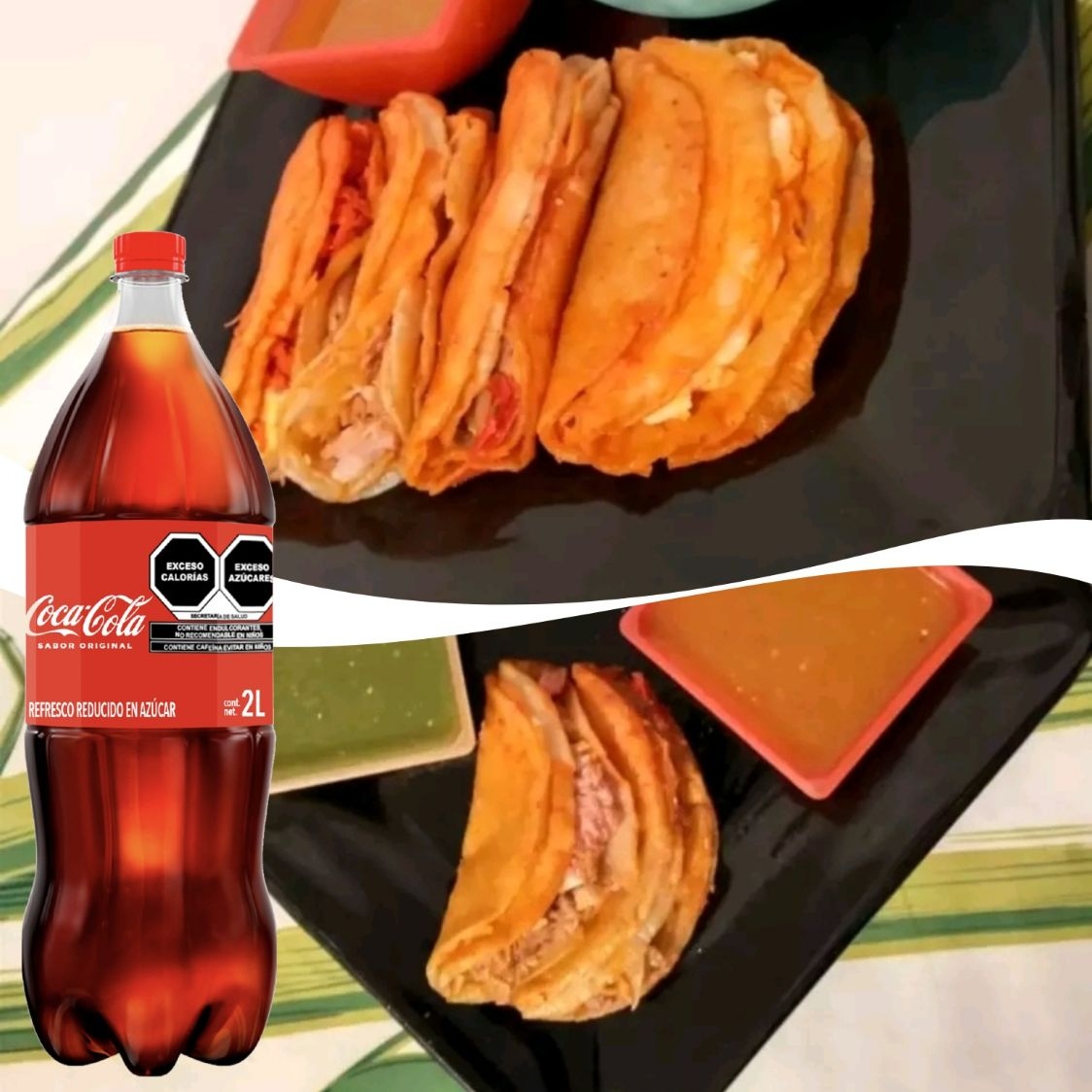 Coca cola original 1, 35 L*1 + Plato grande de 10 tacos*2