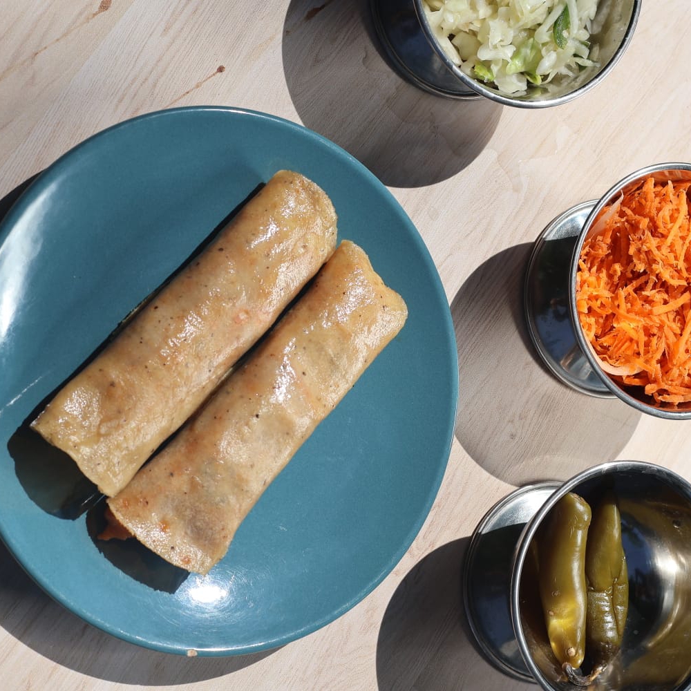 Tortilla de maíz con papa y queso asadero.