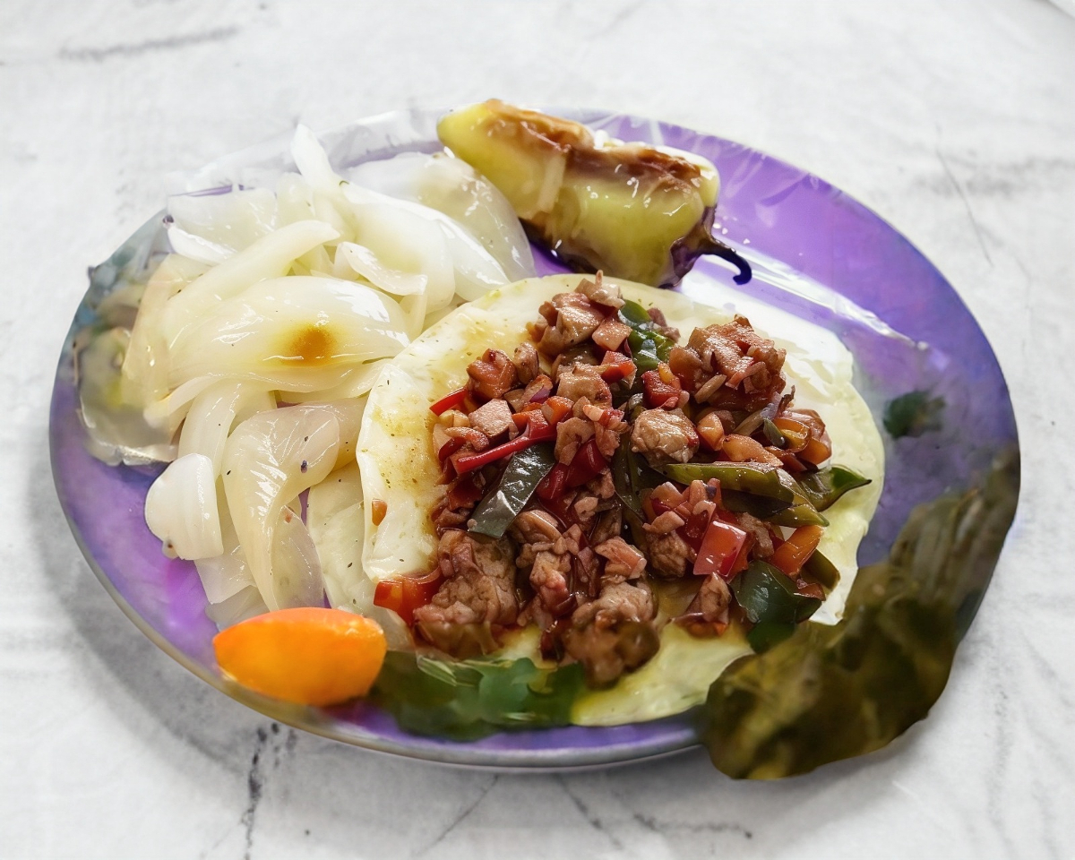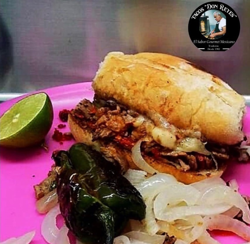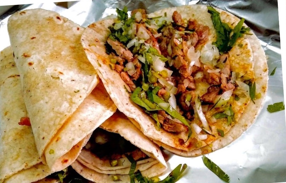 Taco con tortilla doradita, queso, carne a elegir, combinado con carne de res, aderezo, piña, chile morrón y cebolla.