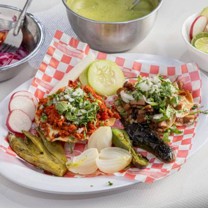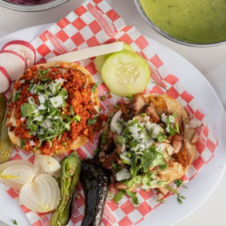 Tacos rellenos de una mezcla de carnes (chorizo).